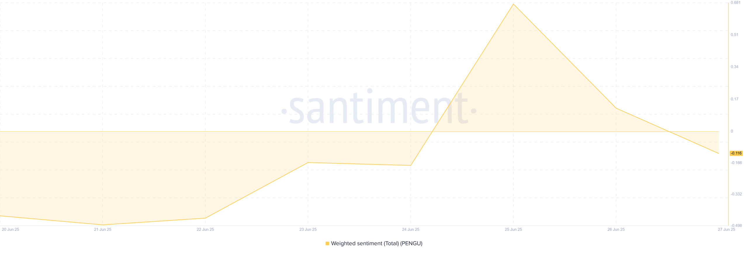 On-chain data backed the caution. Santiment showed Weighted Sentiment dipped to -0.116 as of the 27th of June, down from a local peak just days earlier.