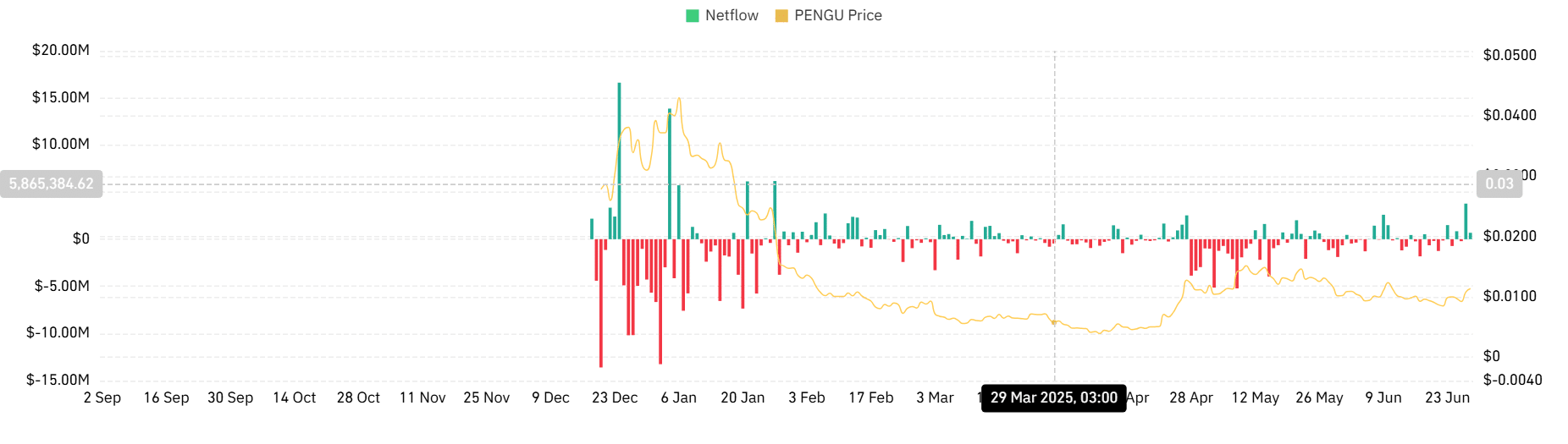 A positive Netflow indicates a higher inflow of exchange relative to outflow. Historically, such a setup precedes higher selling pressure, resulting in downward pressure on prices.
