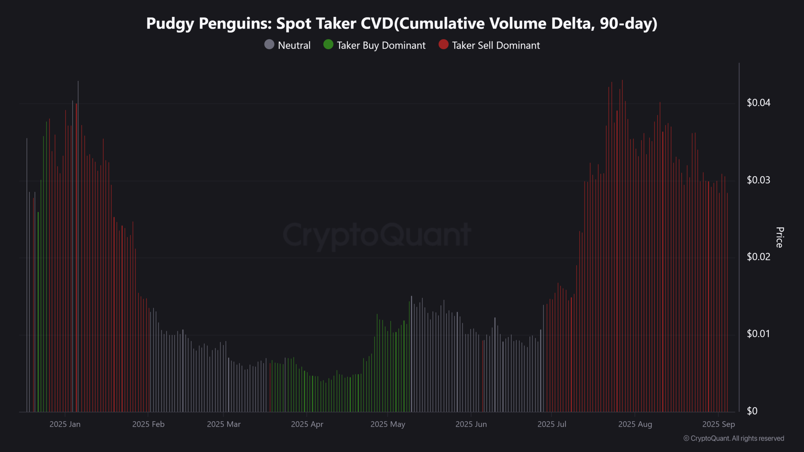 This analysis suggested that selling may be on the decline as PENGU nears $0.025.