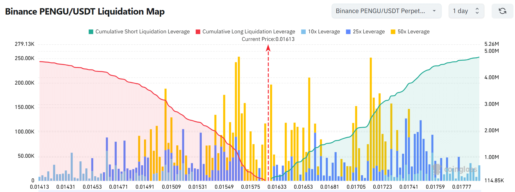 If momentum continues and liquidation clusters are triggered, PENGU could surge quickly toward the $0.028 level.