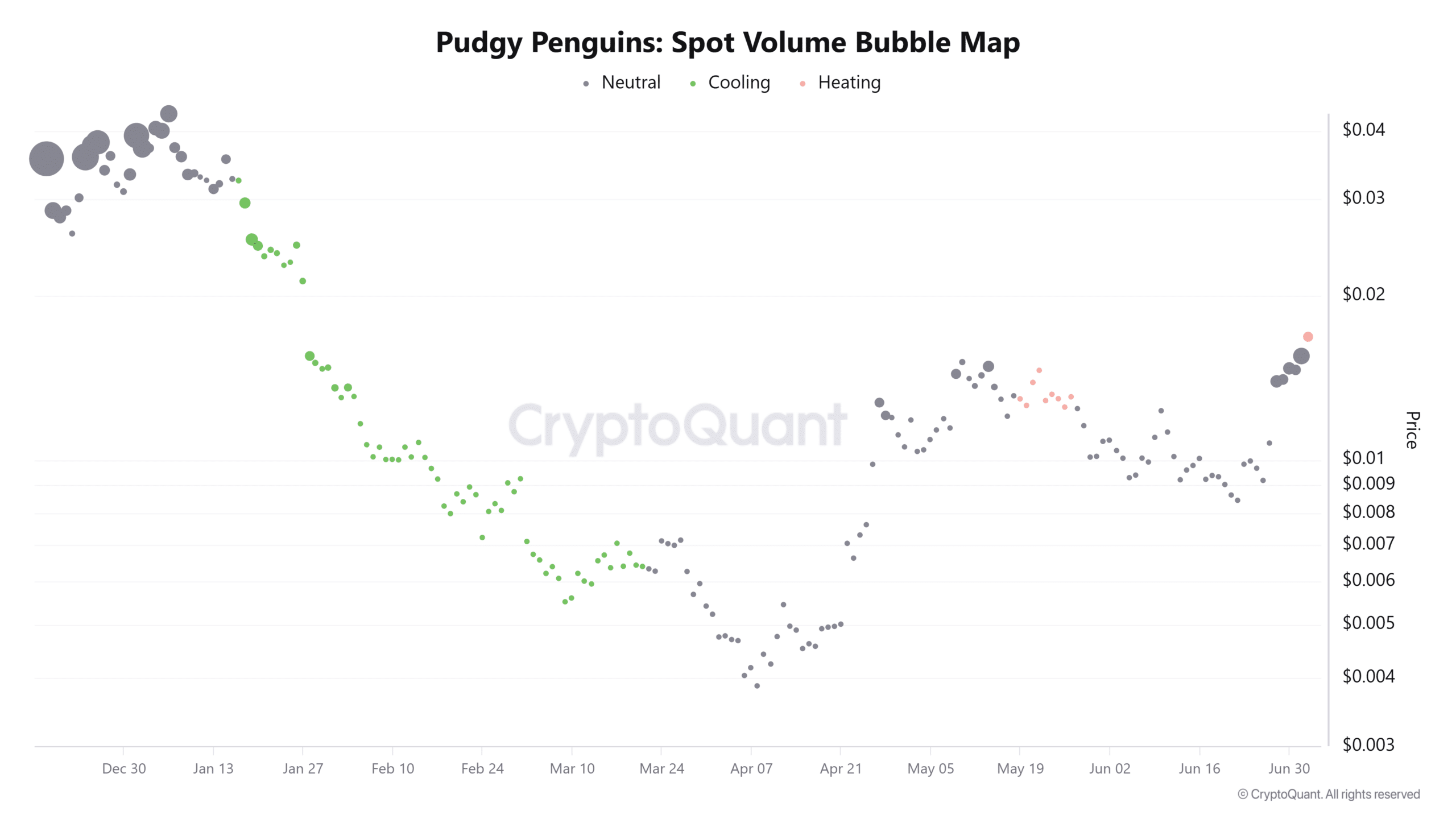 The Spot Volume Bubble Map has turned “heating,” pointing to a dramatic rise in buy-side activity across exchanges.