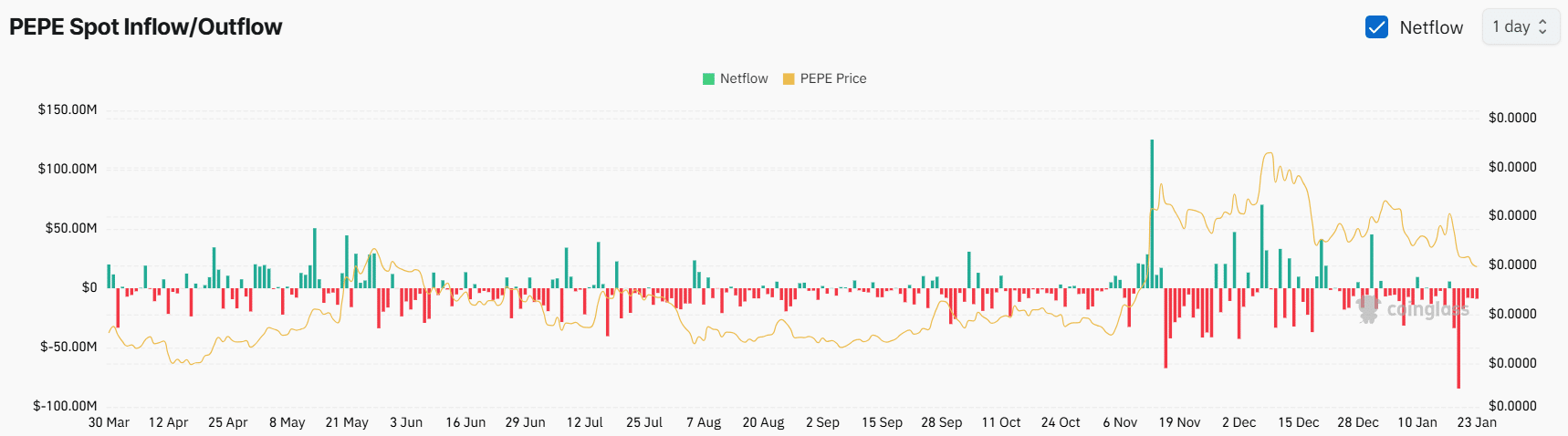 Since December 2024, Pepe [PEPE], the popular crypto memecoin, has experienced a price decline of over 45%, and appeared to be struggling at press time.