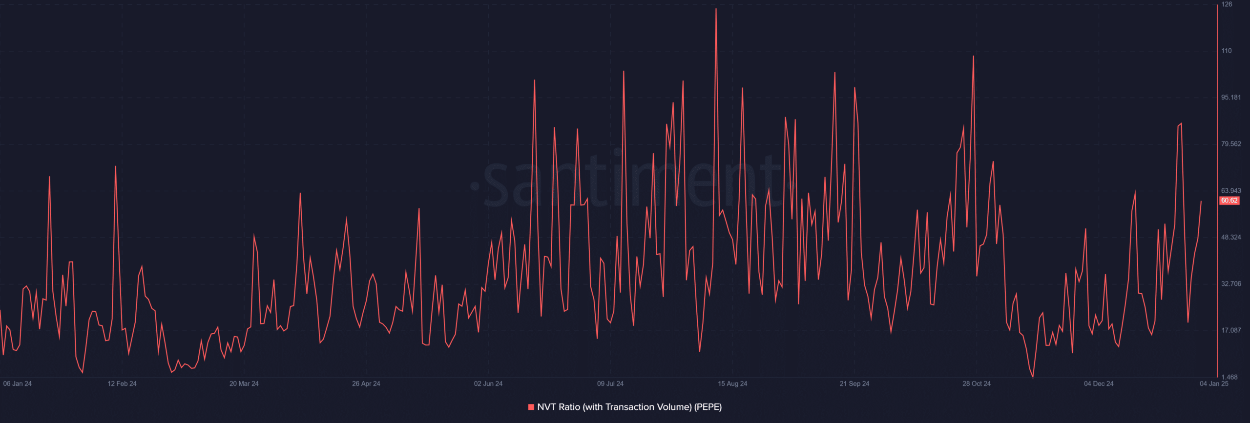 The network value to transaction (NVT) ratio has risen from 48 to 60.62, indicating increasing on-chain activity relative to the token’s market valuation.