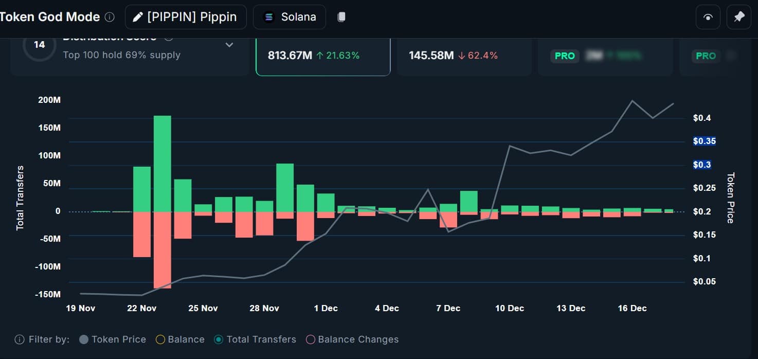 If buying pressure holds, Pippin could attempt to flip $0.50 into support and test new highs. However, risks tied to wallet concentration remained significant.