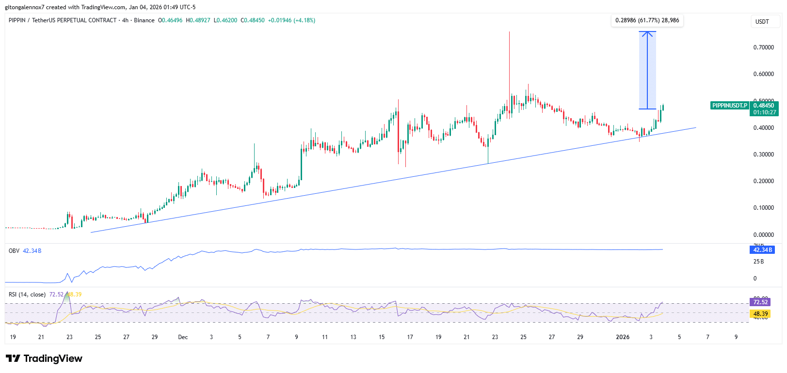 The charts showed that PIPPIN had been respecting an ascending trendline support since late November. This rally for the memecoin has been in place for more than a month.