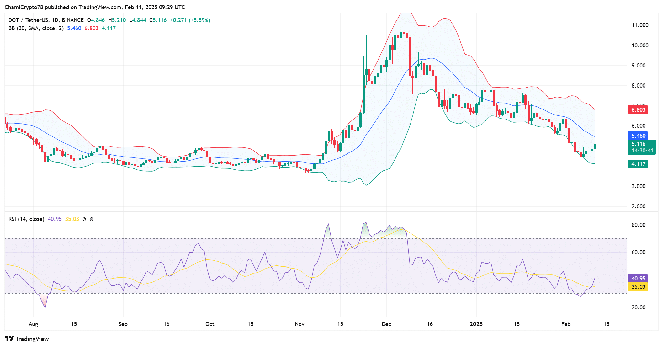 Looking ahead, the price prediction for Polkadot remains optimistic, especially if the current bullish momentum holds. If DOT successfully breaks above $5.20 and stays above key support levels, we could see it test higher levels, potentially hitting $5.50 or beyond.