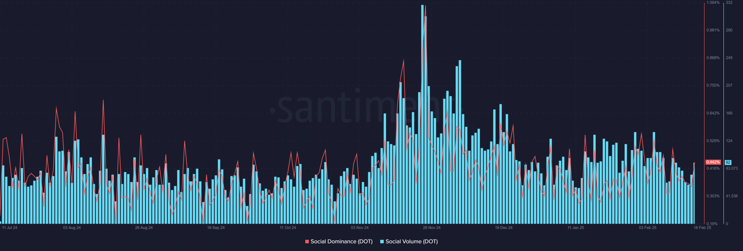 The rising social dominance, at 0.4417% at press time, suggested that Polkadot was gaining momentum in the digital currency space.