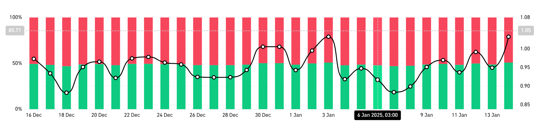 When longs dominate, it suggests that most investors are bullish and expect price gains.