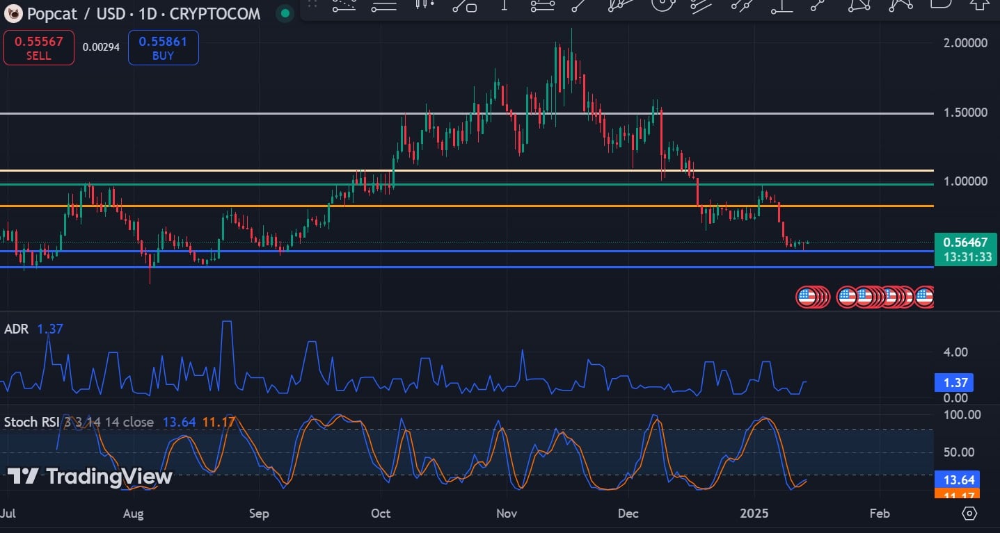 At the time of writing, Popcat was trading at $0.5581, marking a 2.29% increase over the past day.