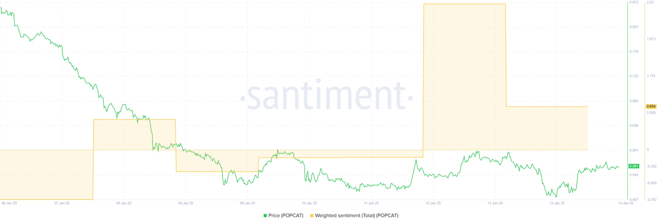 Looking further, Popcat’s market sentiment has turned positive after four days of negative trend. As such, weighted sentiment turned positive 48 hours ago.