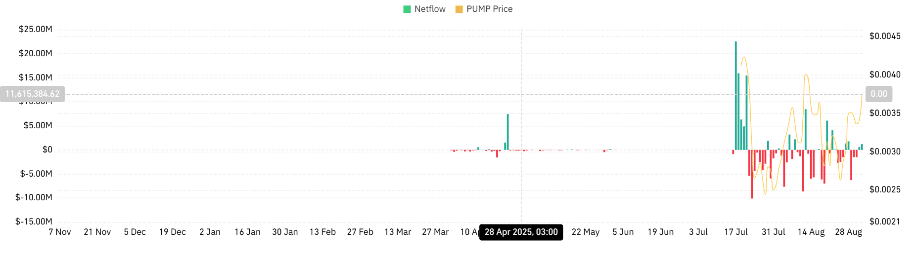 According to CoinGlass, PUMP recorded two consecutive days of positive Netflow, reflecting inflows as holders offloaded tokens. At press time, Netflow stood at $1.19 million, highlighting aggressive selling flows.