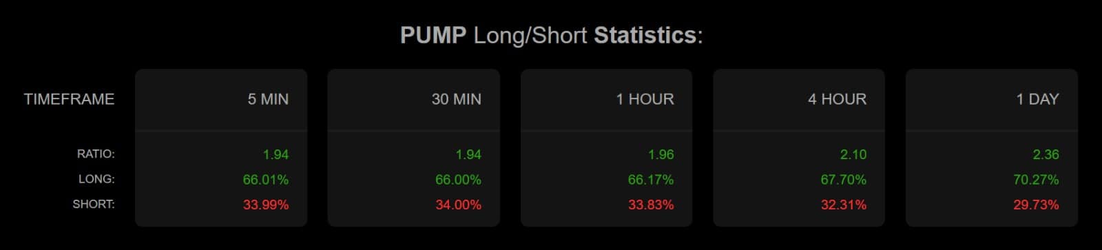 Moreover, Coinalyze showed Pump.fun’s Long/Short Ratio at 2.36, up from an average of 1.96. Long positions made up 70.27% of accounts, while shorts held 29.73%.