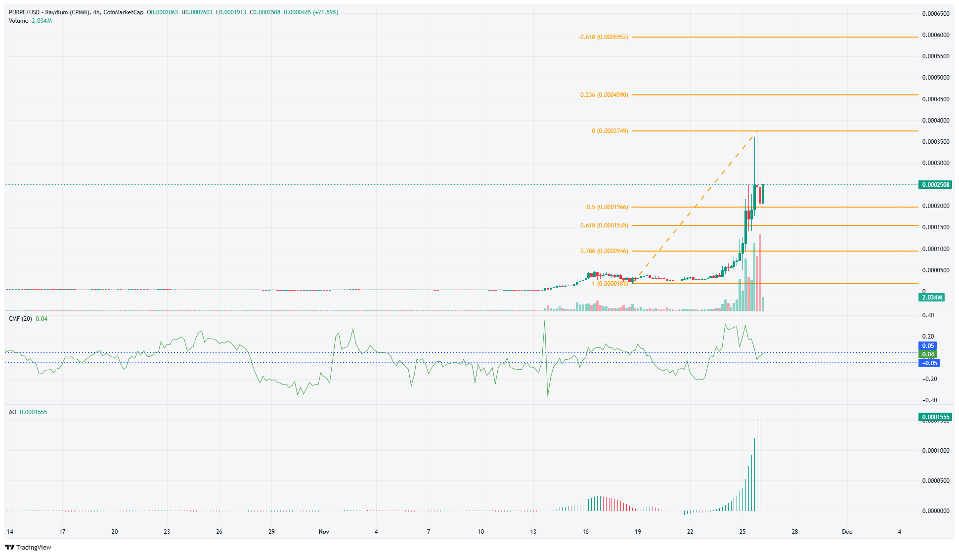 As issues stand, Purple Pepe has retested the 50% Fibonacci degree at $0.0001966 and rebounded effectively. The bullish construction endured. A brief-term bearish bias would develop ought to PURPE fall under $0.00014.