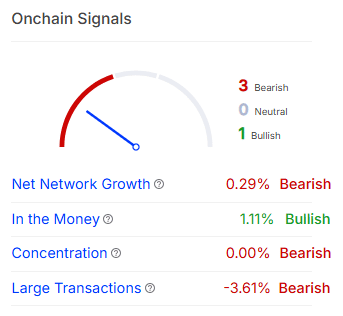 On-chain data presented mixed signals. Net network growth was up by just 0.29%, reflecting weak adoption. Without new users, bullish momentum could weaken.