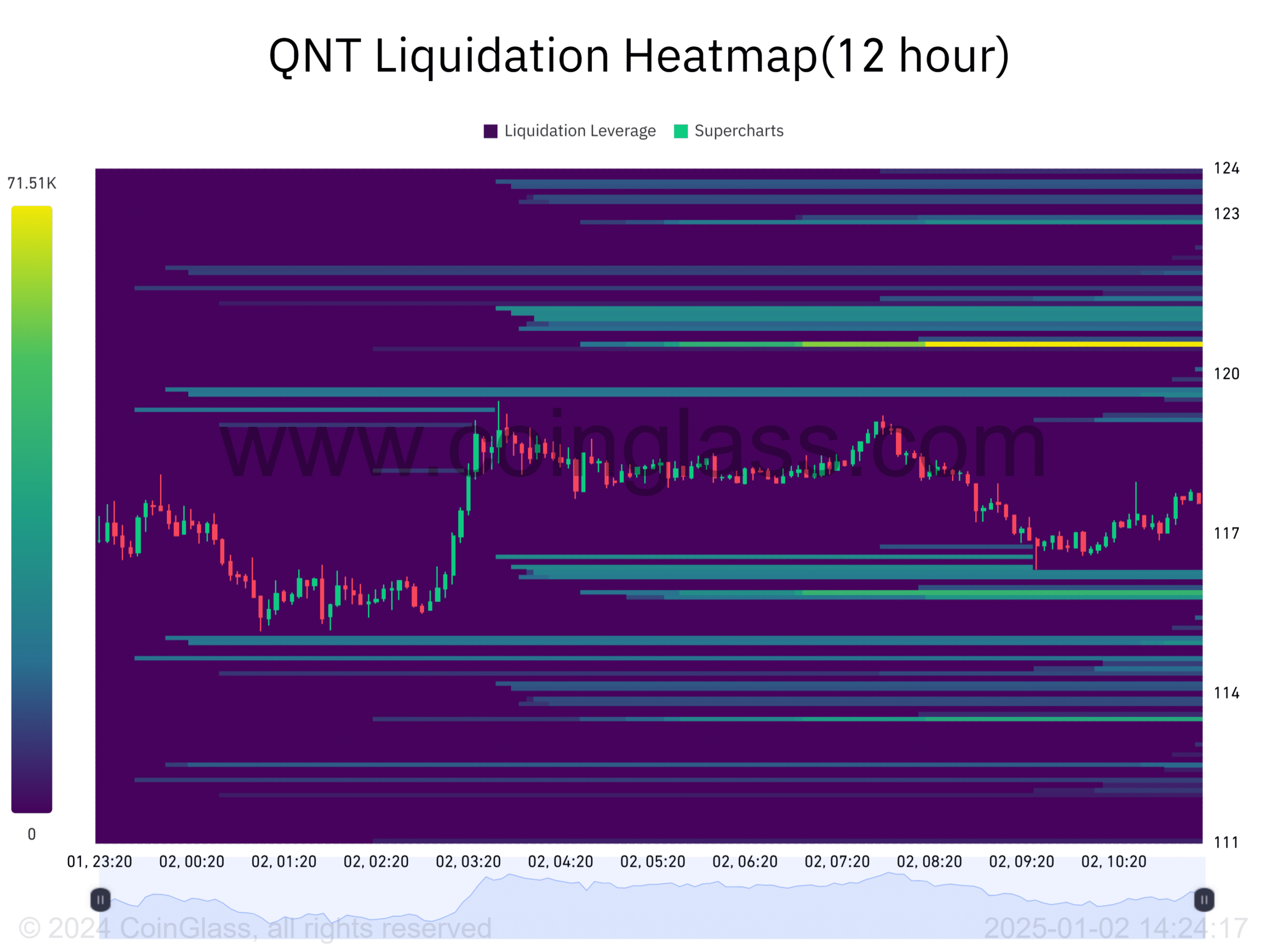 Quant’s liquidation heatmap showed that there was a cluster of liquidations at $120. This level could act as a magnet zone if at-risk traders choose to close their positions as the price rises.
