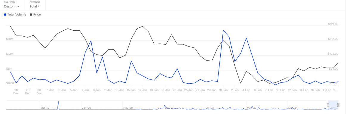 From its low the previous day, a total of $1.29 million in QNT was traded in the market. This indicates interest among large holders.