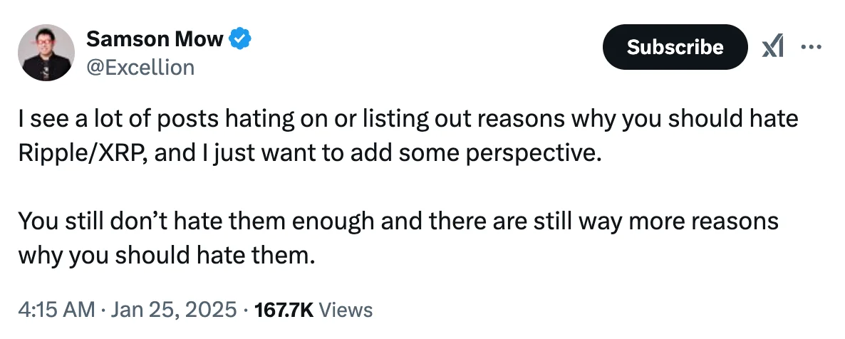 Seeing this rising tension, Ripple CEO, Brad Garlinghouse took to X and noted with a hint of sarcasm,
