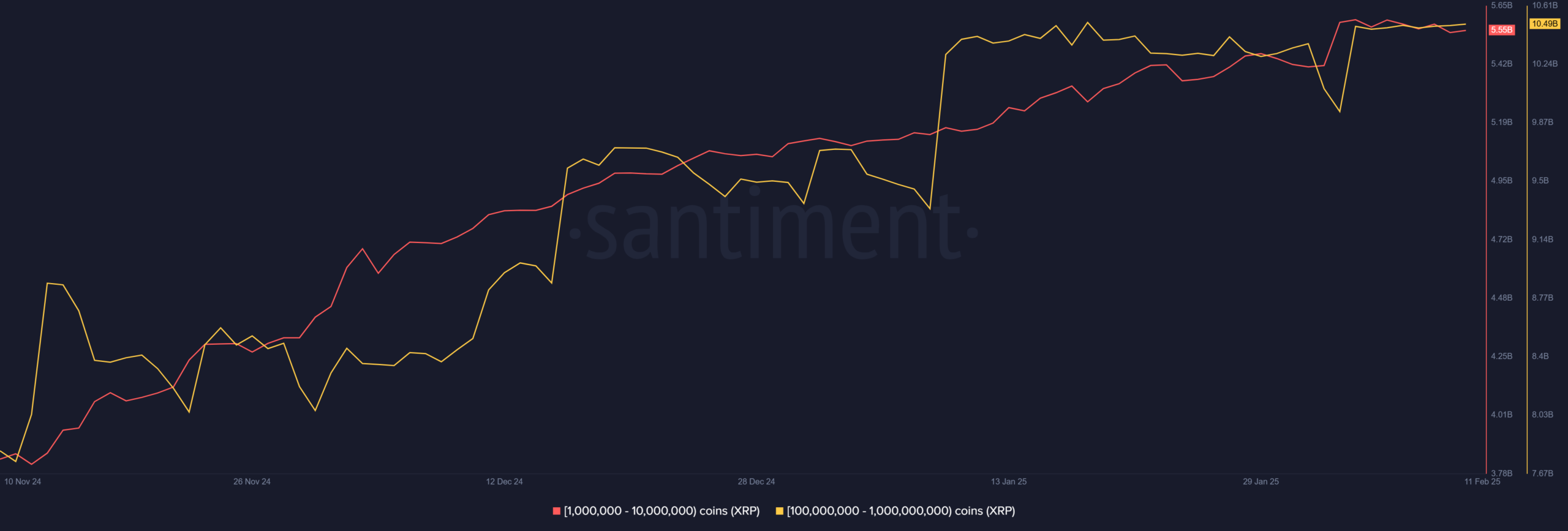 Just this past week, wallets holding 10M – 1B XRP acquired an additional 550 million tokens, boosting their holdings by 5.55%. The result? It sparked a 3.09% price jump the very next day.