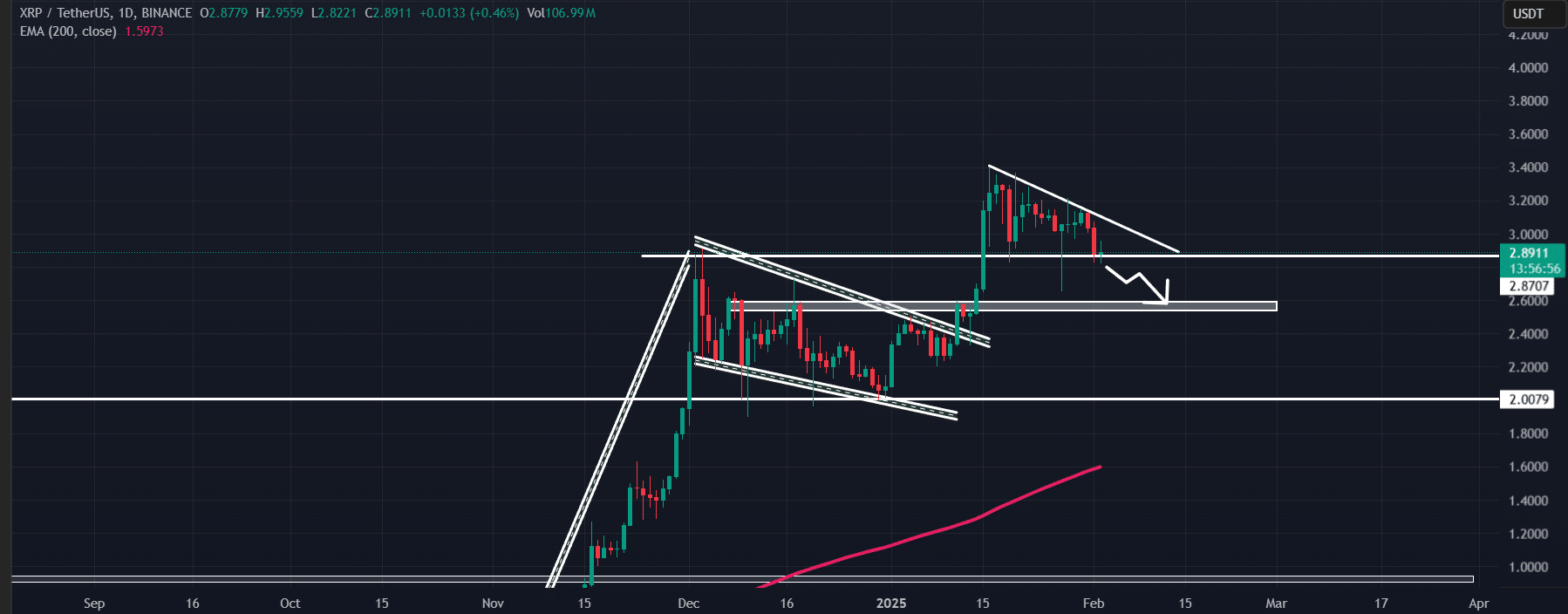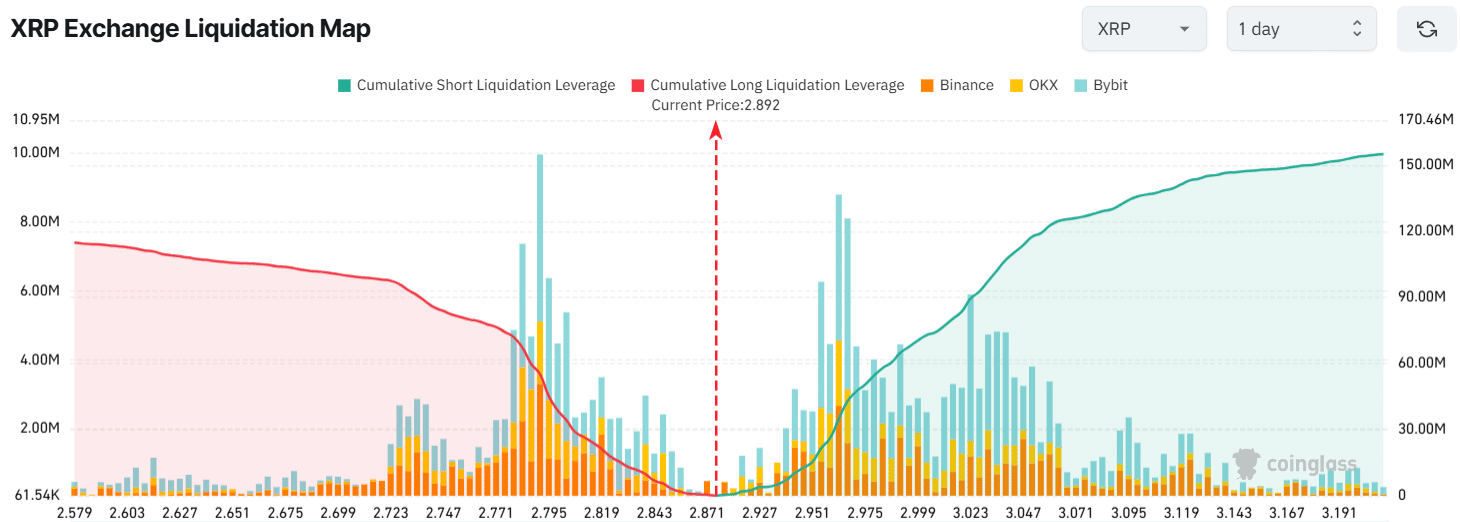 Based on the recent price action, if XRP fails to hold the $2.88 level, there is a strong possibility it could fall by 10% to reach its next support at $2.55.