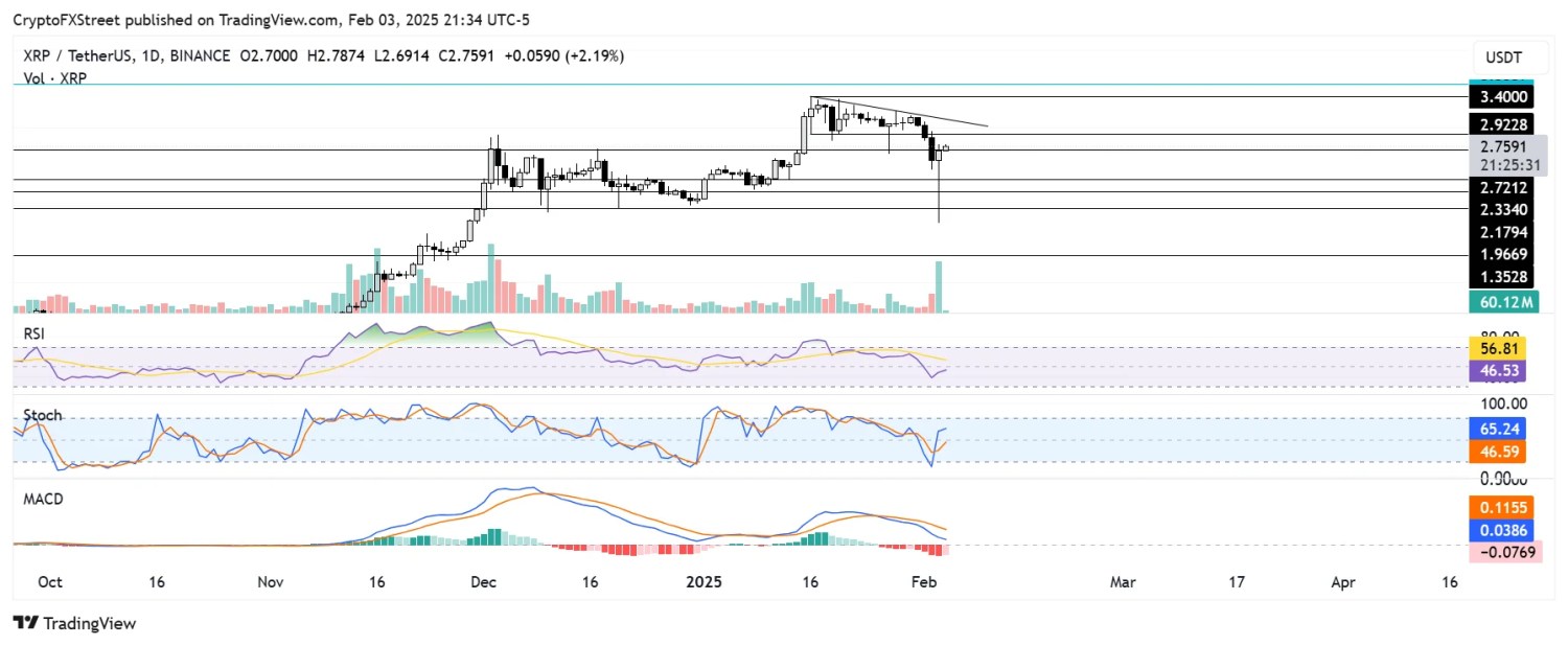 With the market recovering, it is eyeing a move back above $3.00. A successful breach could set the stage for a rally toward its seven-year high resistance at $3.40. However, XRP must first contend with a descending trendline resistance that has been in play since January 16.