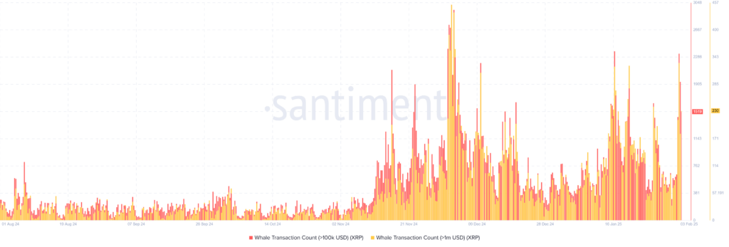 On-chain data reveals that whale investors have been at the forefront of this volatility. Both long-term and short-term holders offloaded large amounts of XRP, as evidenced by spikes in whale transaction counts and Dormant Circulation metrics. This selling pressure led to its Weighted Sentiment—a key indicator of market mood—plummeting to levels last seen in November.
