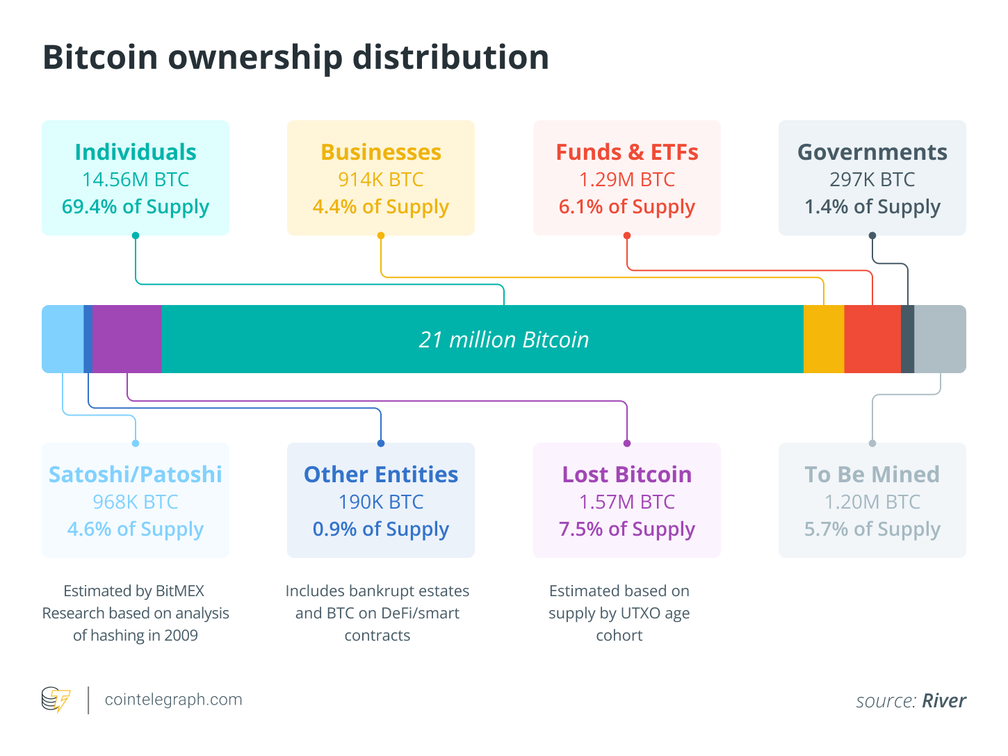 Still, the majority of Bitcoin — nearly 70% — is owned by individuals.