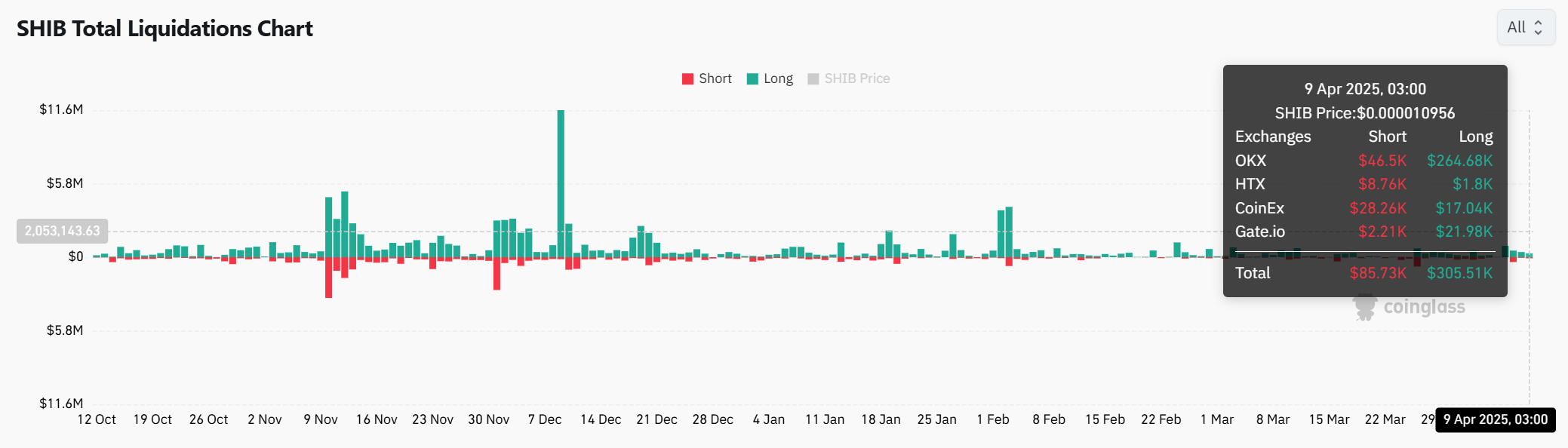 At the time of writing, SHIB saw $305.51K in long liquidations compared to $85.73K in short liquidations. Although longs took a bigger hit, the market remains active, and shorts are starting to get squeezed.