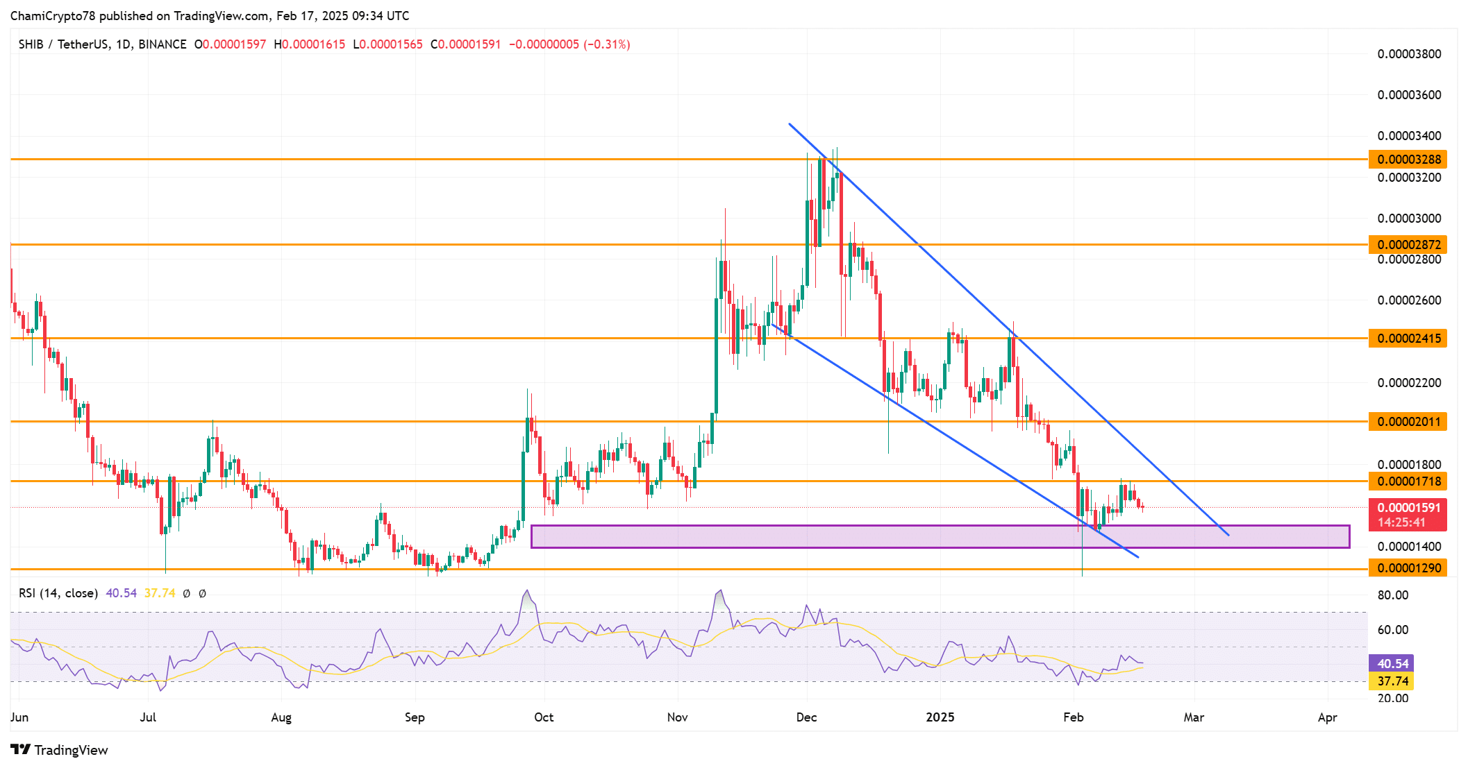 At the time of writing, the Relative Strength Index (RSI) sat at 40.54, suggesting that SHIB was approaching oversold conditions.
