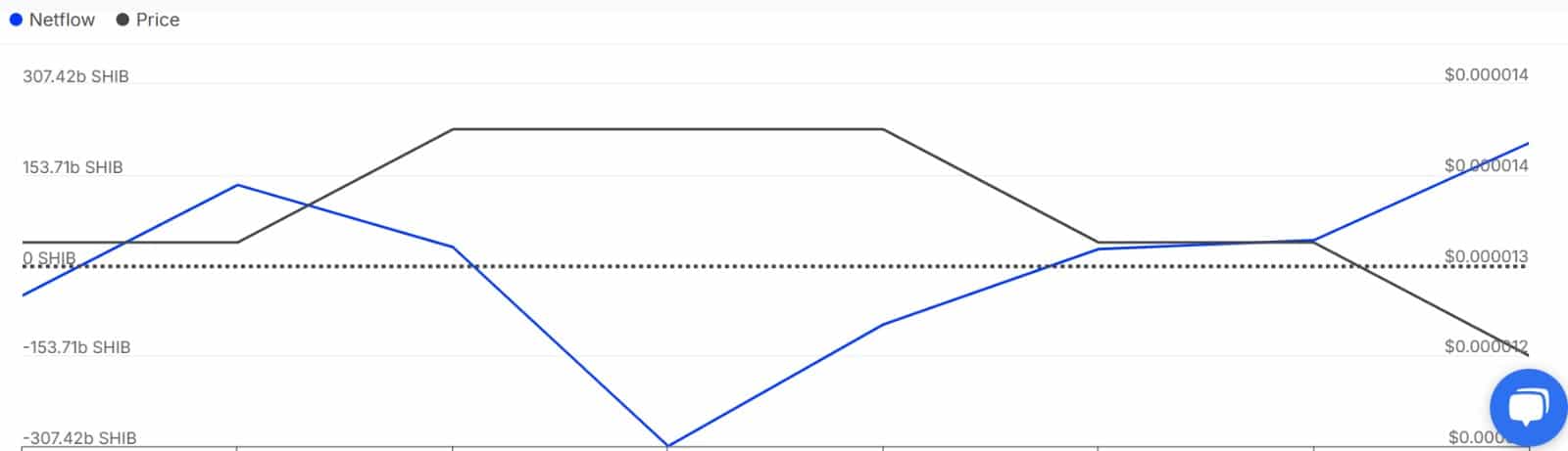 • SHIB has declined by 12.34% in thirty days, hitting a 2-week low.
