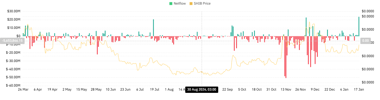 Recent data shows a nuanced inflow and outflow pattern for SHIB. While spot inflows highlight short-term profit-taking near resistance levels, consistent outflows underscore continued accumulation by long-term holders.
