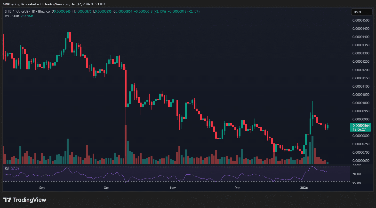 SHIB remained in a consolidation phase through late December and early January.