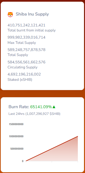 The 65,141% increase meant 1.007 billion Shiba Inu tokens were burnt in just 24 hours. While it sounded like a truckload, it only amounted to $11,583.