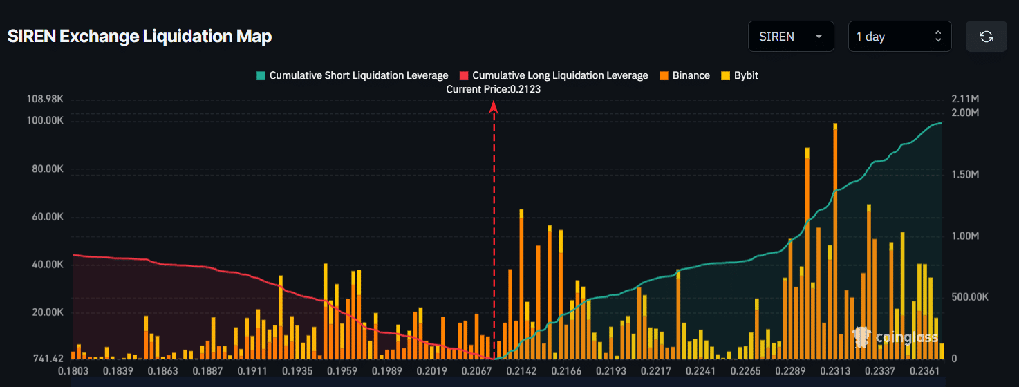 These trader bets reflect a bearish outlook, suggesting they believe the SIREN price will not cross the $0.2313 level anytime soon.