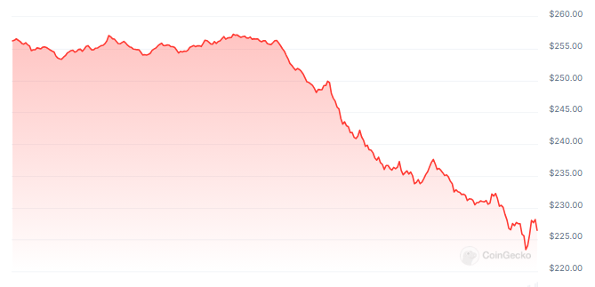 SOL price down in the last 24 hours. Source: Coingecko