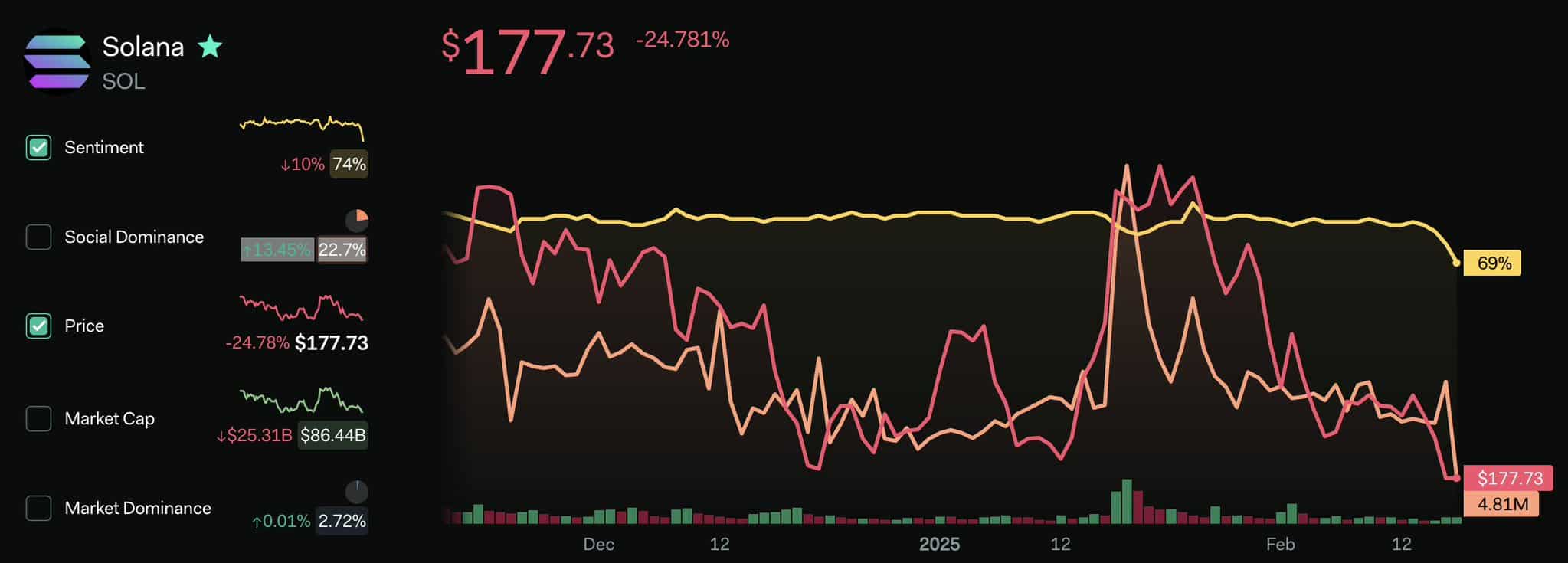 SOL’s trading volume has seen a sharp decline across centralized and decentralized exchanges (DEXs), confirming the shift in sentiment.
