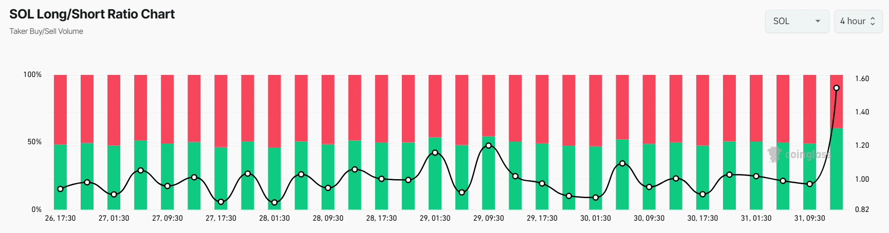 According to Coinglass, the SOL Long/Short Ratio was 1.545 at press time, indicating strong bullish sentiment among traders.