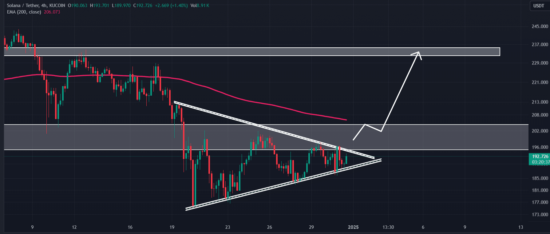 Based on recent price action, if the asset breaches this pattern and closes a daily candle above the $196 mark, there is a strong possibility it could soar by 18% to 20%, reaching the $233 mark in the near future.
