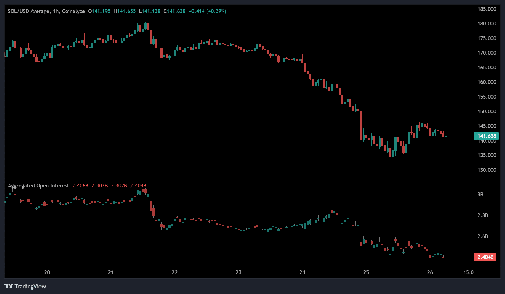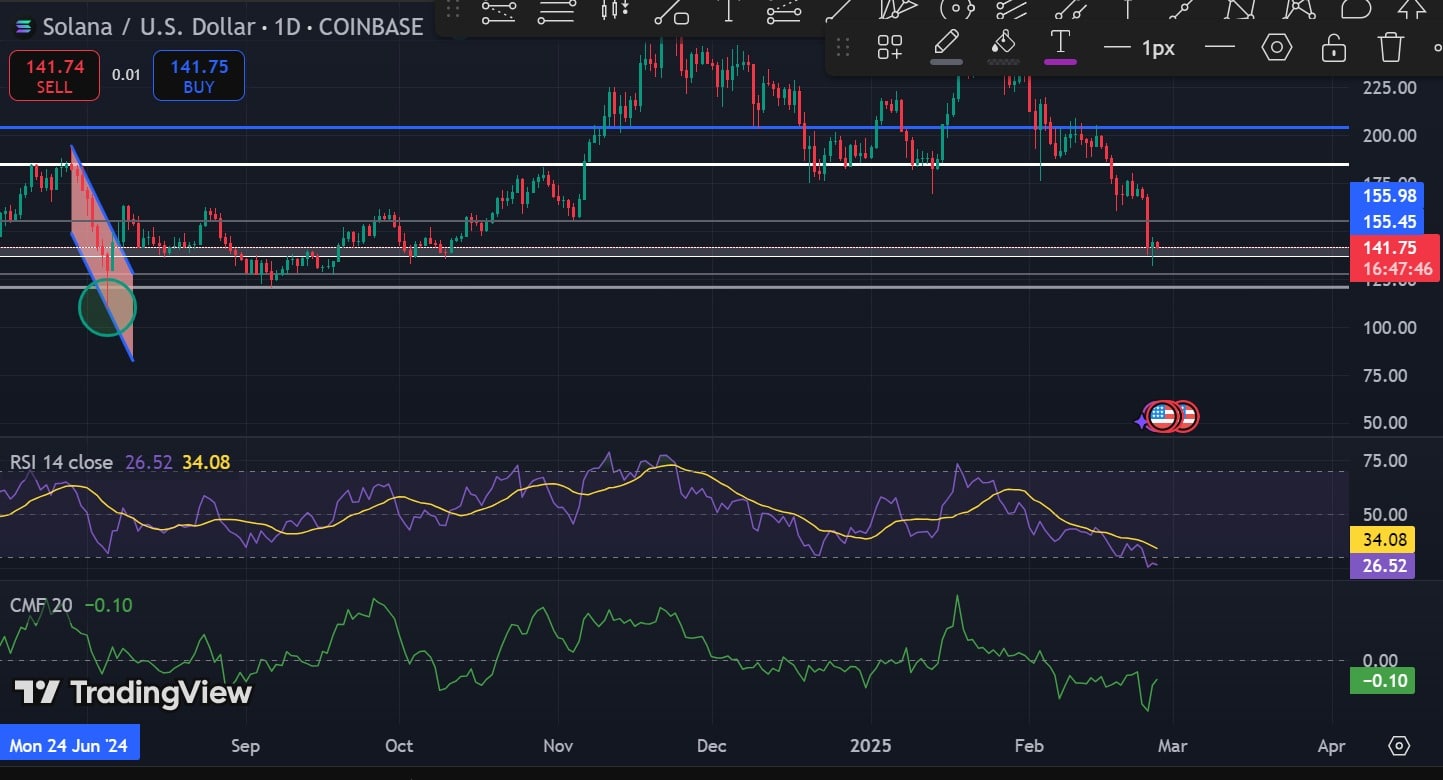 At the time of writing, Solana was trading at $141, marking a 38.74% decline over the past month.