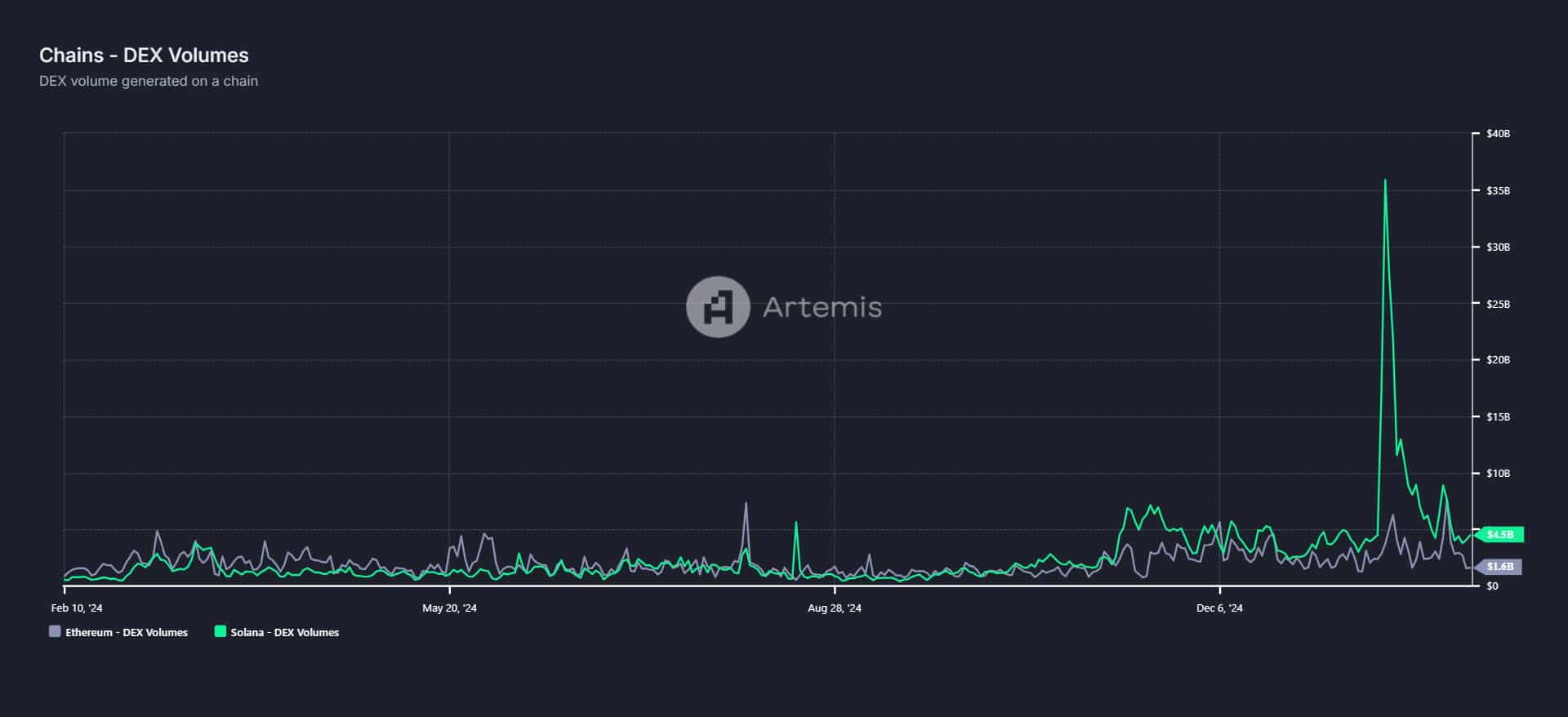 On top of that, Solana was still outperforming Ethereum [ETH] in key areas, like DEX volume, despite SOL’s massive fall from its $40 billion all-time high to $4.5 billion at press time.