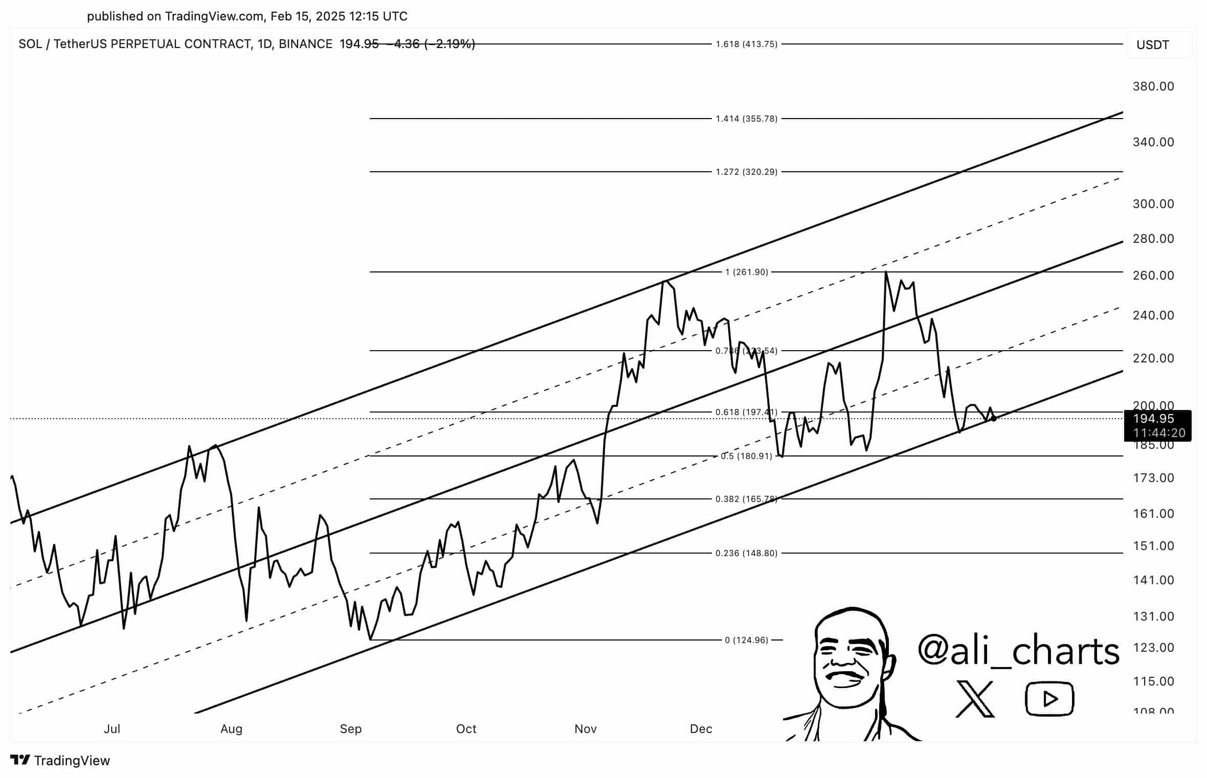 Analyst Ali Martinez’s analysis shows that SOL has been following a clear parallel channel, a pattern often associated with steady price movement within defined levels.
