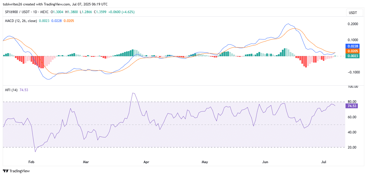 With the MACD rising and MFI confirming aggressive accumulation, SPX could soon retest $1.38–$1.40.