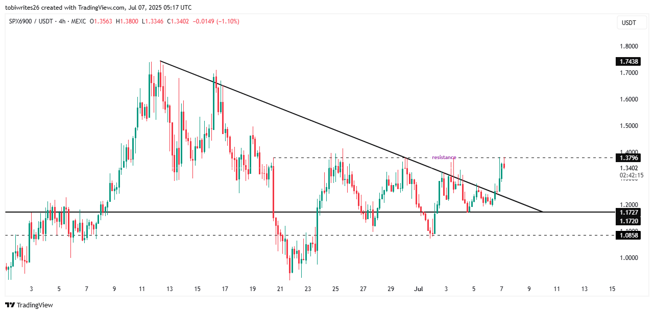 • SPX is looking to capitalize off the memecoin market gains and break above $1.37.