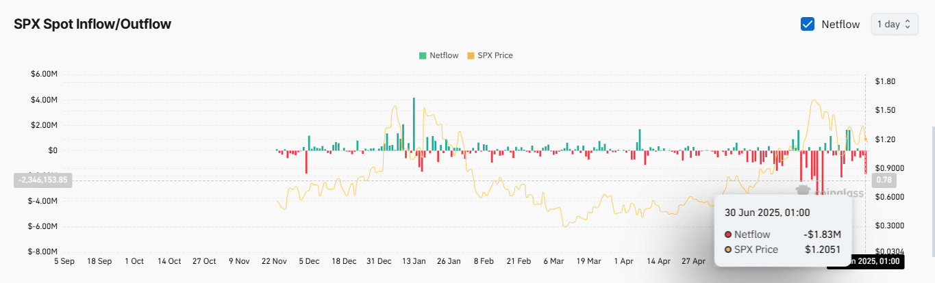 CoinGlass Spot Exchange Netflow revealed that investors have been purchasing SPX and transferring it into private wallets for long-term holding. During this period, $2.83 million worth of SPX was accumulated.