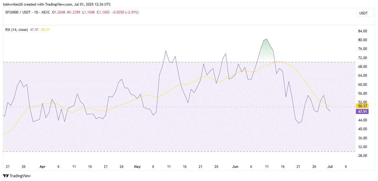 The Relative Strength Index stood at 47.91 and trended downward. An RSI below 50 signals that selling pressure is dominant.