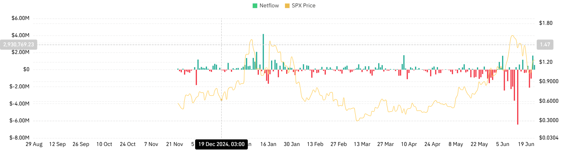 On top of that, Netflow also flipped positive. This suggests that while prices climbed, investors offloaded nearly 7 million SPX tokens.