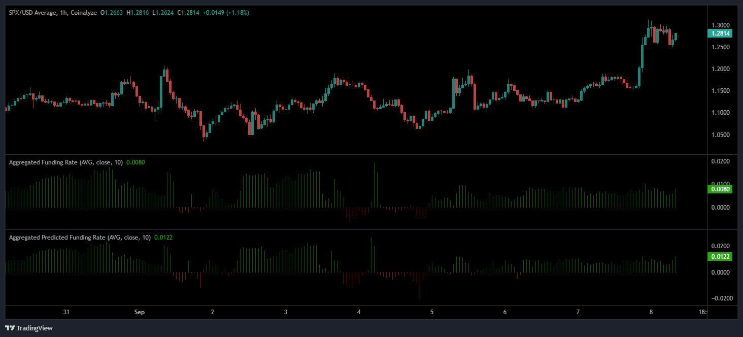 At press time, SPX traded near $1.34 with $42 million in volume, surging past $1.30 resistance. That barrier previously rejected advances, but higher volume created a price gap that fueled the rally.