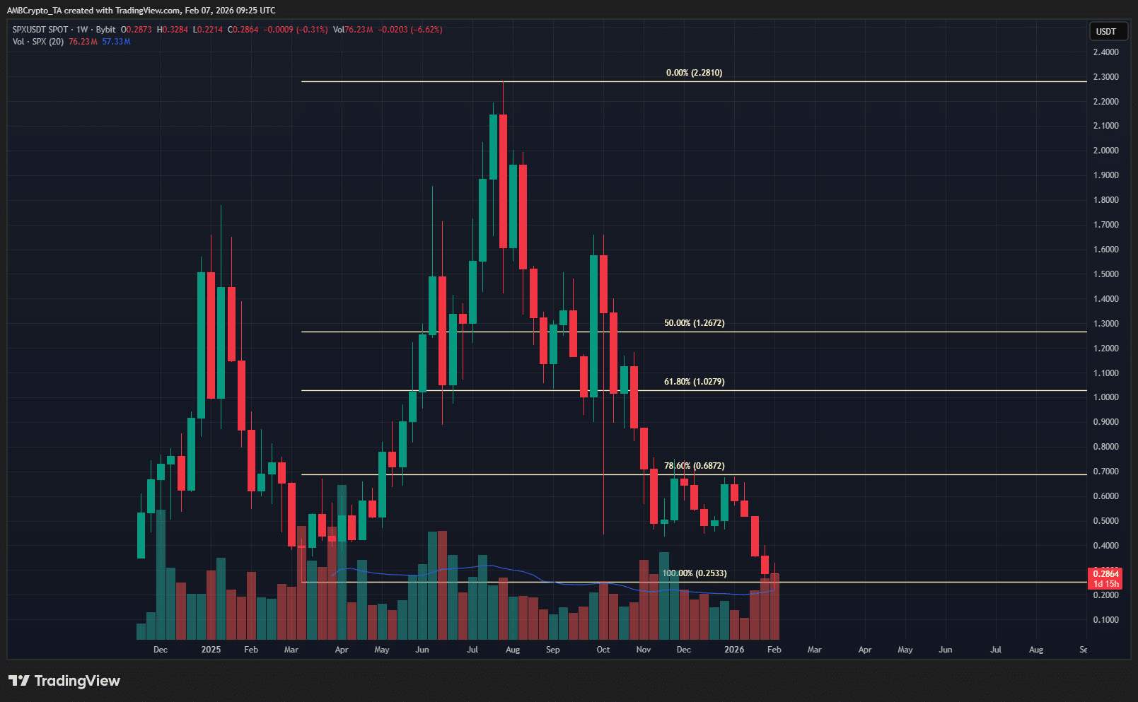 Over the past week, SPX has shed 8.79%, and was down 51.95% in 30 days. These figures might sound dreadful, especially if one is more used to trading and investing in traditional markets that the memecoin aims to flip in size one day, but they were the norm in the memecoin sector.