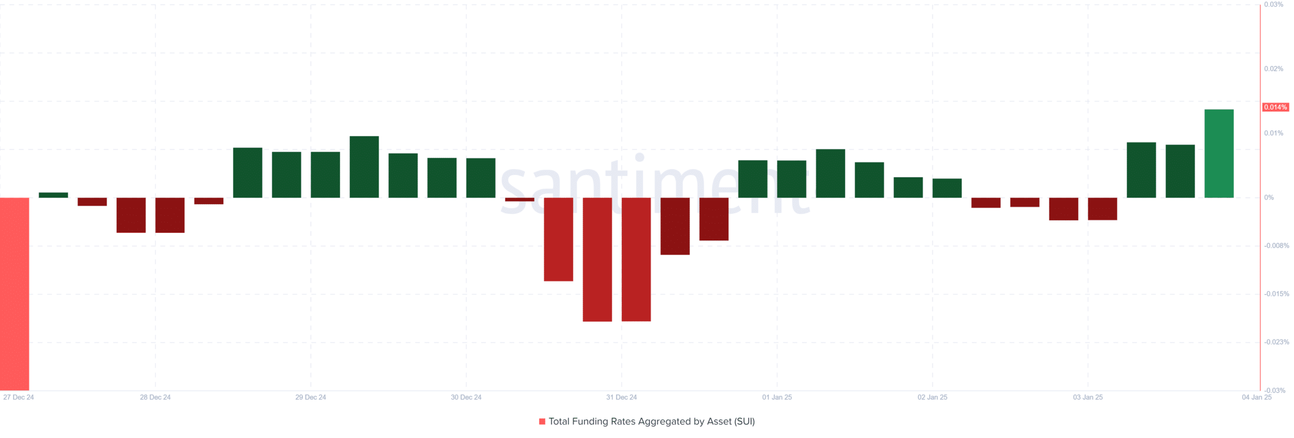 Finally, SUI’s total funding rate aggregated by asset turned positive over the last 24 hours. When this turns positive, it means that future contracts are trading at a premium to the spot market – A sign that optimism is driving the price higher in the Futures market.
