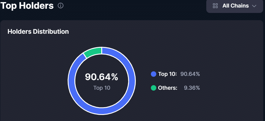 Per CoinMarketCap data, over 90% of the token was controlled by the top 10% holders. This meant that the token price could be easily manipulated by a few top holders.