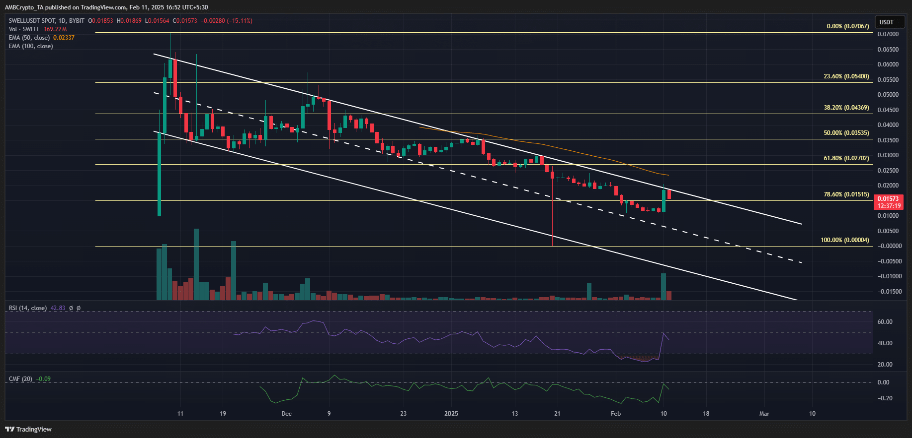 Since topping $0.07 in December, SWELL has erased nearly 80% of its value. But this wasn’t surprising, as most altcoins shed 20-90% in the past few weeks amid Trump tariffs wars and inflation fears.